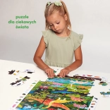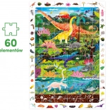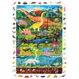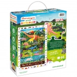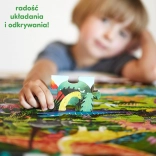 Das Entdeckerpuzzle Dinosaurier enthält 60 Teile, die ein faszinierendes Bild mit Dinosauriern ergeben. Die Illustration ist von einem Rahmen voller Details umgeben, die Kinder gerne entdecken und mit dem Bild vergleichen. Im Set ist auch ein Bildungsplakat enthalten, auf dem Kinder interessante Fakten über die Welt der Dinosaurier finden.
