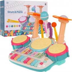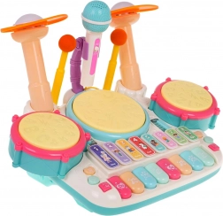 Interaktives Musikset, Klavier mit Trommeln für Kinder ab 3 Jahren. Das Musikalische Spielzeug besteht aus hochwertigstem Kunststoff in lebendigen Farben und unterstützt das Kind beim Spielen und beim Erlernen von Musikinstrumenten. Das Spielzeug kombiniert Schlaginstrumente und Klavier und ist mit einem Mikrofon und einem Soundsystem ausgestattet. Die Tasten erzeugen Klavier-, Trompeten-, Gitarrenklänge, Tierlaute sowie Zahlennamen. Drei Trommeln und ein Becken leuchten bei jedem Schlag mit den Sticks auf. Es gibt außerdem einen Lernmodus, bei dem auf den Trommeln Lichter erscheinen (ein Licht, Doppellicht, Dreifachlicht – mit unterschiedlicher Geschwindigkeit) und das Kind lernt, Rhythmen zu klopfen. Das Musikspielzeug verfügt über eine Lautstärkeregelung und einen Mikrofoneingang, der Teil des Sets ist. Das Spielzeug wird mit 4 AA 1,5-V-Batterien betrieben (nicht im Lieferumfang enthalten). . Funktionen des Sets: . - geeignet für Kinder ab 3 Jahren, .- hergestellt aus hochwertigstem Kunststoff, .- keine scharfen Kanten, .- lebendige Farben ziehen Kinderaugen an, .- beleuchtete Trommeln und Becken, .- Mikrofon mit Beschallung, .- Spiel- und Lernmodi, .- Klavier-, Trompeten-, Gitarren-, Tier- und Zahlenklänge, .- Lautstärkeregelung, .- Mikrofoneingang, . |