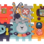 Die Paneele lassen sich abnehmen und flach ausklappen. So kann das Kind seine Lieblingsaktivitäten auswählen und bequem auf der Unterlage spielen.