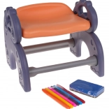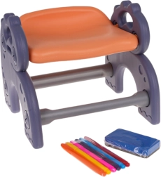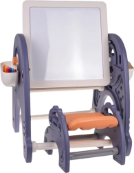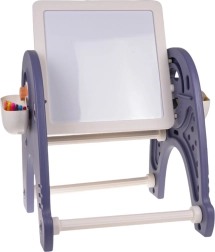 4-in-1-Set: Tafel, Tisch, Bauklotz-Unterlage und Stuhl für Kinder ab 3 Jahren. Das Set besteht aus hochwertigem Kunststoff, hat keine scharfen Kanten und ist stabil. Auf den Kunststoffbeinen ist eine Tafel angebracht, die in jeden Winkel geneigt und gedreht werden kann. Auf der einen Seite befindet sich eine Zeichenfläche, auf der anderen eine Unterlage zum Bauen mit Klötzen. Tafel und Unterlage können vertikal oder horizontal verwendet werden. In horizontaler Position kann das Set als Maltisch, Lerntisch oder Esstisch sowie als Bauplatte genutzt werden. Im Set enthalten sind ein Schwamm und 6 Filzstifte. An den Seiten des Sets befinden sich außerdem zwei Körbchen für Malutensilien. Das Set fördert die Fantasie und kognitiven Fähigkeiten der Kinder. .. Funktionen des Sets: . - geeignet für Kinder ab 3 Jahren, .- aus sicheren Materialien hergestellt, ohne scharfe Kanten, .- viele Spielmöglichkeiten: .* Maltisch, .* Tisch zum Lernen oder Spielen, .* Ständer zum Bauen mit Klötzen, .* Zeichenbrett, .- stabiler Stuhl, .- fördert die kindliche Fantasie und kognitiven Fähigkeiten. . |