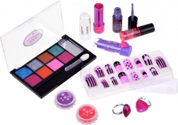 Das Set enthält alles für eine komplette Verwandlung: cremige Lidschatten mit Applikator, glitzernde Lipglosse und Lippenstifte, Nagellacke, selbstklebende Tips mit fertigen Designs sowie niedliche herzförmige Ringe. Das Spiel mit Kosmetik fördert die Feinmotorik, das Farbgefühl und unterstützt die Selbstentfaltung.