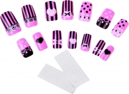 Künstliche Nägel mit verschiedenen Mustern und herzförmige Ringe verleihen jedem Styling Pfiff und Glanz.