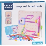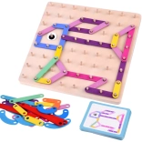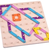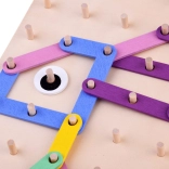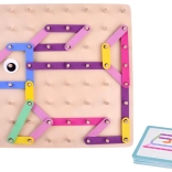 Bunte Stäbchen in verschiedenen Längen werden nach Vorlagen oder frei nach Fantasie auf die Platte mit Stiften gelegt. Großartiges Training für Feinmotorik und räumliche Vorstellungskraft.