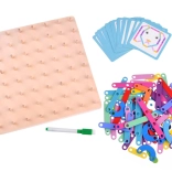 Dieses clevere Set kombiniert eine Mosaik-Pegboard-Tafel mit bunten Holzstäbchen und einer abwischbaren Schreibfläche. Auf der einen Seite setzen Kinder Stäbchen in unterschiedlichen Längen und Farben in die Holzstifte und gestalten Bilder nach Karten oder eigenen Entwürfen. Auf der anderen Seite der Tafel trainieren sie Grafomotorik, Schreiben und erste Zeichnungen mit dem beiliegenden abwischbaren Marker.