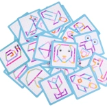 Enthalten sind 28 farbenfrohe Karten mit Mustern. Kinder ahmen Formen schrittweise nach, lernen zu planen und gewinnen Sicherheit beim Legen.