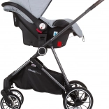 Praktische Details erleichtern den Alltag: ein verstellbarer Tragegriff für einfaches Transportieren, eine Wippbasis zur Beruhigung, ein abnehm- und waschbarer Bezug sowie ein klappbares Verdeck zum Sonnenschutz. Die weiche Polsterung und ein Y-förmiger 3-Punkt-Gurt sorgen für sicheres und bequemes Anschnallen.