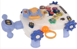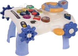 Lenkrad mit Pfeife, Zahnräder, Formensortierer und Mini-Korb fördern Feinmotorik, Koordination und logisches Denken.