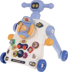 Die einfache Umwandlung vom Lauflernwagen zum interaktiven Tisch spart Platz und erweitert die Spiel- und Lernmöglichkeiten.