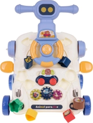Dieser multifunktionale Lauflernwagen begeistert Eltern und Kinder: Er dient als Unterstützung bei den ersten Schritten und gleichzeitig als Aktivitätstisch für eine spielerische Entwicklung. Das Panel bietet ein Lenkrad mit Pfeife, Zahnräder, einen Formensortierer und einen Mini-Korb zum Einwerfen des Balls – alles so gestaltet, dass Koordination, Konzentration und motorische Fähigkeiten gestärkt werden.