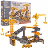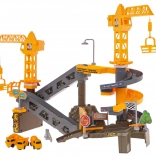 Bauen Sie Ihre eigene, lebhafte Baustelle mit zwei funktionsfähigen Kränen, Drehelementen und einem Aufzug für die Autos. Förderschienen befördern die Fahrzeuge nach oben, über Rampen fahren sie wieder hinab – die ideale Kombination aus Action und fantasievollem Spiel. Die Teile bestehen aus robustem Kunststoff und fallen dank kräftiger Farben sofort ins Auge.