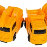 Enthalten ist ein Set kleiner Baustellenfahrzeuge, Verkehrszeichen, Schranke und dekorative Aufkleber für eine authentische Baustellenatmosphäre.