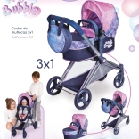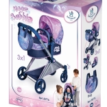 Entdecken Sie den eleganten 3-in-1-Puppenwagen im einzigartigen Regenbogendesign Magic Bubble. Dank der höheren Schiebehöhe, der abnehmbaren Wanne und der einfachen Umwandlung in die Sportversion ist er ideal für Vorschulkinder, die realitätsnah „Mama und Papa“ spielen möchten. Die robuste Kombination aus Metall, Kunststoff und Textil sorgt für Stabilität und Langlebigkeit, während die klappbare Konstruktion die Aufbewahrung und den Transport im Auto erleichtert.