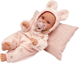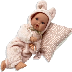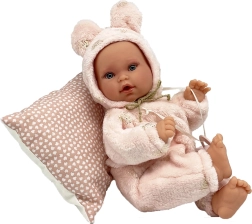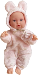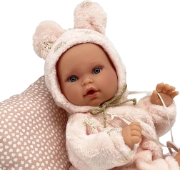 Die Puppe Antonio Juan Kika ist ein handgefertigtes Baby mit realistischen Details, sanftem Ausdruck und einem weichen Outfit. Eine innere Stütze ermöglicht natürliche Haltungen – sie kann die Beinchen überkreuzen, die Handflächen zusammenlegen oder wie ein echtes Baby liegen. Der weiche Stoffkörper lädt zum Kuscheln ein, während die Vinylteile für Robustheit und detailgetreue Ausführung sorgen.
