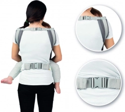 Das breite, verstellbare Panel hält den Rücken des Babys in der richtigen Rundung und sorgt für die ergonomische M-Position der Beinchen für eine sichere Hüftentwicklung.