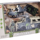 Stellen Sie Ihr eigenes Gefechtsszenario mit einem umfassenden Militär-Set zusammen, das Bodenfahrzeug, Hubschrauber, Boot und weiteres Zubehör kombiniert. Zwei detaillierte Soldatenfiguren, ein Hund und ein funktionaler Turm erweitern die Spielmöglichkeiten und fördern Fantasie sowie kreatives Erzählen.