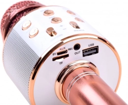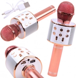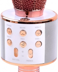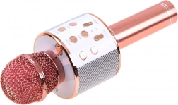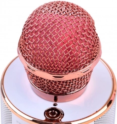 Genießen Sie Karaoke zu Hause jederzeit und überall mit diesem kompakten, kabellosen Mikrofon mit integriertem Lautsprecher im eleganten Roségold-Design. Es bietet Bluetooth 4.0 für die einfache Verbindung mit Smartphone oder Tablet, Regler für Stimme, Bässe, Höhen und Echo sowie klaren Klang dank Geräuschreduktion. Das leichte, tragbare Design sorgt für Spaß auf Partys und für Kinder – ganz ohne App-Installation.