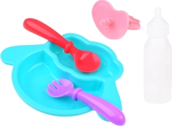 Fläschchen, Schnuller und Tellerchen mit Besteck unterstützen das Fütterspiel und die Pflegeroutine. Zubehör wie Töpfchen oder Handtuch vervollständigt das authentische Erlebnis in der Rolle des „kleinen Elternteils“.
