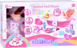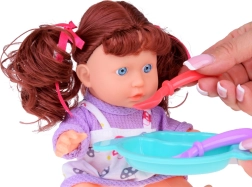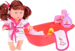 Diese interaktive Babypuppe mit blauen Augen und langem kastanienbraunem Haar fördert die Fantasie und die Pflegekompetenzen der Kinder. Dank des weichen Gummikopfs und des Kunststoffkörpers wirkt sie beim Spielen angenehm und realistisch. Kinder können ein Bad in der mit Wasser gefüllten Wanne vorbereiten, der Puppe den Bademantel anziehen und sich um die täglichen Rituale kümmern.