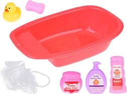 Die Wanne kann mit Wasser gefüllt werden – für ein sinnliches Spiel mit Entchen, Schwämmchen und „Kosmetik“. Kinder üben die Pflege des Babys und grundlegende Hygienerituale.