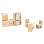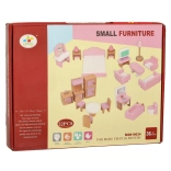 Verwandeln Sie das Puppenhaus in ein gemütliches Zuhause. Dieses umfangreiche Möbelset aus Naturholz bietet alles für die komplette Ausstattung von vier Räumen: Wohnzimmer, Schlafzimmer, Bad und Küche. Die robuste Ausführung und sanfte Pastellfarben schaffen eine harmonische Umgebung für das tägliche Spiel.