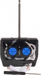 Steuern Sie Ihren Fisch einfach und intuitiv mit der schwarzen und blauen Fernbedienung mit Antenne und zwei leuchtend blauen Steuerknöpfen.