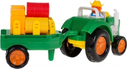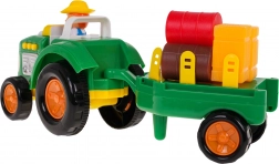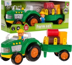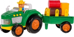 Traktor mit abnehmbarem Anhänger, Bauernfigur, 3 Strohballen in verschiedenen Farben, 2 Strohklötze, Batterien 3 x AG13