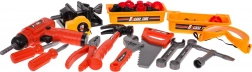 Das Set enthält realistische Plastikinstrumente wie Bohrmaschine, Hammer, Säge und mehr, die die Fantasie der Kinder fördern.