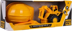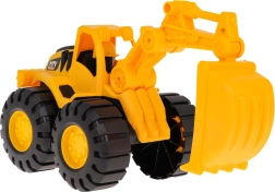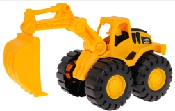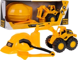 Der Bagger hat eine manuell bewegliche Schaufel und einen Arm, die eine Bedienung wie bei einer echten Maschine ermöglichen. Große Räder des Baggers erlauben Bewegung auf jeder Oberfläche. Im Set ist auch ein Helm enthalten, der ein echtes Bauarbeitergefühl verleiht.