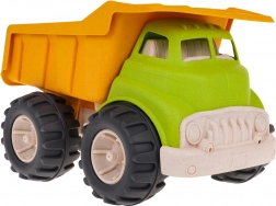 Der Kipplaster besteht aus Bioplastik, was umweltfreundlich und gleichzeitig sicher für Kinder ist.