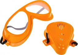 Schraubendreher, Hammer, Schlüssel, Zangen, Schutzbrille und Maske, Holzleisten sowie Befestigungsmaterial. Alles für kreatives Bauen und das Training der Feinmotorik.