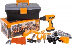 Dieses Kinder-Werkzeugset bietet alles, was ein kleiner Heimwerker braucht: einen großen Werkzeugkoffer, Schutzbrille und Maske, Hammer, Schraubendreher, Zangen, Schlüssel sowie Bauteile mit Schrauben und Dübeln. Dank hochwertigem Kunststoff ist das Set leicht, robust und ideal für Spiel wie bei den Profis.