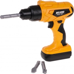 Die Kinder-Bohrmaschine für 2× AA (1,5 V, nicht im Lieferumfang) zieht Schrauben wirklich fest und löst sie, hat austauschbare Bits und einen herausnehmbaren „Akku“. Soundeffekte verstärken das Spielerlebnis.