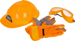 Kunststoffhelm, Schutzbrille und Handschuhe fördern sicheres Verhalten beim Spielen auf der Baustelle und verleihen kleinen Heimwerkern einen selbstbewussten Profi-Look.