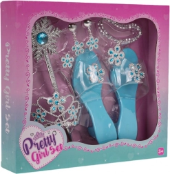 Ein zauberhaftes Set für kleine Prinzessinnen ab 3 Jahren, das jede Verkleidungsliebhaberin begeistert. Enthält eine Tiara, eine Halskette, einen Zauberstab, einen Ring, Ohrringe und Absatzschühchen in einer eleganten silber-blauen Kombination mit funkelnden „Diamanten“. Ideal als Geschenk und zum Prinzessinnenspielen.