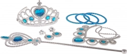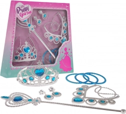 Dieses umfangreich ausgestattete Set verwandelt jedes Spiel in eine märchenhafte Geschichte. Glänzende Plastik‑„Diamanten“ und Imitationen von Edelsteinen in silber‑blauer Ausführung verleihen jedem Prinzessinnen‑Outfit das gewisse Etwas. Die Accessoires sind mit Augenmerk auf detailreiche Verarbeitung und angenehmen Tragekomfort gestaltet.