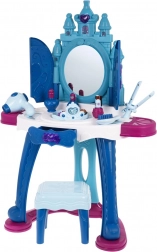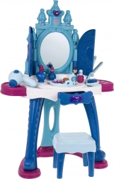 Der interaktive Kinderschminktisch besteht aus hochwertigen, robusten Kunststoffen in lebendigen Farben und begeistert jedes Kind, das Verkleiden und Schönheitsrollen liebt. Der große Spiegel öffnet sich per Sensor, spielt fröhliche Melodien ab und schaltet eine dekorative Beleuchtung oben und an den Seiten ein. Zudem werden auf der Spiegelfläche Prinzessinnenfiguren angezeigt, was die magische Spielatmosphäre verstärkt.
