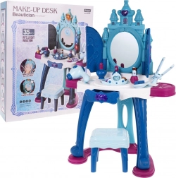 Dank der breiten Tischfläche, der Schublade und der Ablagen hat das Kind alles griffbereit. Im Set finden Sie außerdem einen Hocker und zahlreiche Accessoires für kreatives Styling – vom Kamm und Haarglätter bis zur Krone und Aufklebern. Die sichere Ausführung und die stabile Konstruktion sind ideal für den täglichen Spielgebrauch.