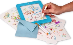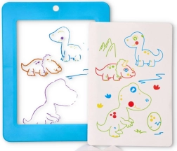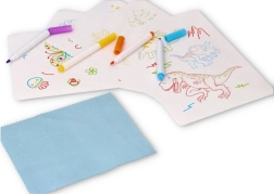 Mit den beiliegenden Schablonen (Dinosaurier, Tiere, Weltraum) und dem Mikrofasertuch lassen sich Motive leicht nachzeichnen und ausmalen; das Board ist im Handumdrehen sauber – Spaß immer wieder von Neuem.