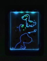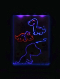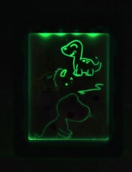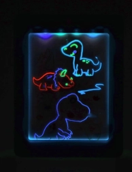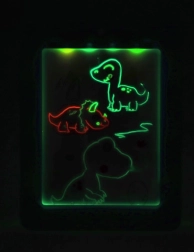 Entdecken Sie leuchtenden Spaß! Das Neon-LED-Board für Kinder kombiniert eine hinterleuchtete Fläche und farbige Stifte für atemberaubende Lichteffekte. Es bietet 7 LED-Modi, leichtes Abwischen und Arbeiten mit Schablonen Dinosaurier/Tiere/Weltraum. Ideal zur Förderung der Kreativität, Feinmotorik und Konzentration – das perfekte Geschenk ab 5 Jahren.