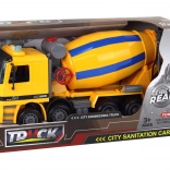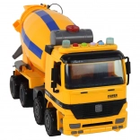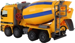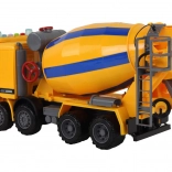 Der Betonmischer ist in Gelb und Blau gehalten, was ihm ein attraktives und charakteristisches Aussehen verleiht. Dank realistischer Details erinnert das Spielzeug an einen echten Betonmischer, was seine Attraktivität für Kinder sicher erhöht.