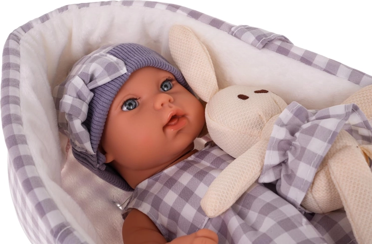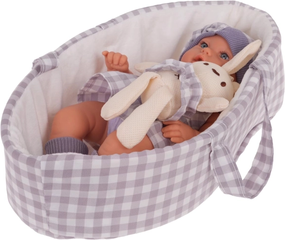 Diese liebevoll gestaltete Baby-Puppe wird zum beliebten Begleiter für das tägliche Spiel. Dank der beweglichen Gliedmaßen und des Kopfes lässt sie sich leicht umziehen, das Körbchen mit weichen Griffen erlaubt es, die Puppe überallhin mitzunehmen, und das Plüschhäschen erfreut als sanftes, kuscheliges Spielzeug.