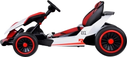 Der Gokart bietet ein markantes sportliches Aussehen, das nicht nur durch sein Design, sondern auch durch die robuste Metallkonstruktion und Kunststoffkomponenten für eine sichere Fahrt besticht.