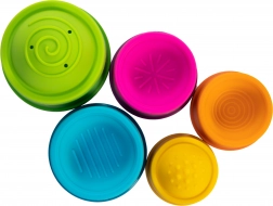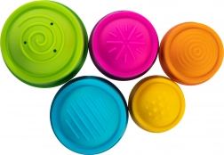 Die Dimpl Stack Stapelhütchen begeistern Kinder mit ihrer angenehm weichen Textur und dem schlichten Design, das zum Entdecken, Sortieren und Bauen anregt. Dank des robusten und sicheren Materials eignen sie sich hervorragend für den täglichen Spielspaß zu Hause und unterwegs.