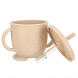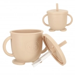 Der Silikonbecher mit Strohhalm und zwei Griffen fördert selbstständiges Trinken und reduziert das Risiko des Verschüttens.