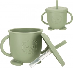 Praktisches und attraktives Silikon-Geschirrset für Kinder. Enthält alles, was Ihr Kind für bequemes und spielerisches Essen braucht. Das Eulenmotiv in olivgrüner Farbe ist nicht nur modisch, sondern erfreut auch jeden kleinen Esser.