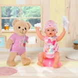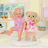 Dem Teddybären passt die meiste Kleidung für BABY born Puppen in Größe 43 cm (außer Schuhe) und er kann deren Accessoires verwenden.