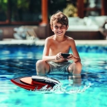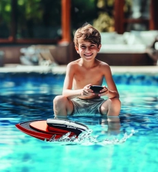 Dieses orange RC-Boot ist ideal für Pools, Teiche und ruhige Gewässer. Die Steuerung in alle Richtungen und die praktische Taste für sofortige Beschleunigung sorgen für dynamisches Fahren und ein tolles Erlebnis. Der Wassersensor verhindert das Starten an Land, wodurch der Betrieb sicher und motorschonend ist.