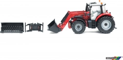 Entdecken Sie das detaillierte Modell des Traktors Massey Ferguson 6616 im genauen Maßstab 1:32. Dieses Modell kombiniert die Stärke von Metallteilen mit der Leichtigkeit von Kunststoffkomponenten, was es gleichzeitig robust und leicht manövrierbar macht. Der Traktor ist mit einer beweglichen Schaufel und drei verschiedenen austauschbaren Ladevorrichtungen für mehr Spielmöglichkeiten ausgestattet.