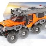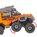 Dieser großartige Bausatz ist zum Zusammenbau eines Geländefahrzeugs vorgesehen. Die Bausteine ermöglichen Ihnen den Bau eines 8-rädrigen Fahrzeugs für Spezialaufgaben. Das Tolle ist, dass das Fahrzeug nach dem Zusammenbau bewegliche Teile hat. Die technischen Bausteine in Orange und Schwarz wurden sehr effektvoll gefertigt.