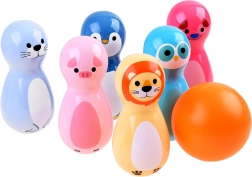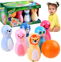 Jeder Kegel ist mit fröhlichen Tiermotiven und leuchtenden Farben gestaltet, die Kinder zum Spielen anregen.